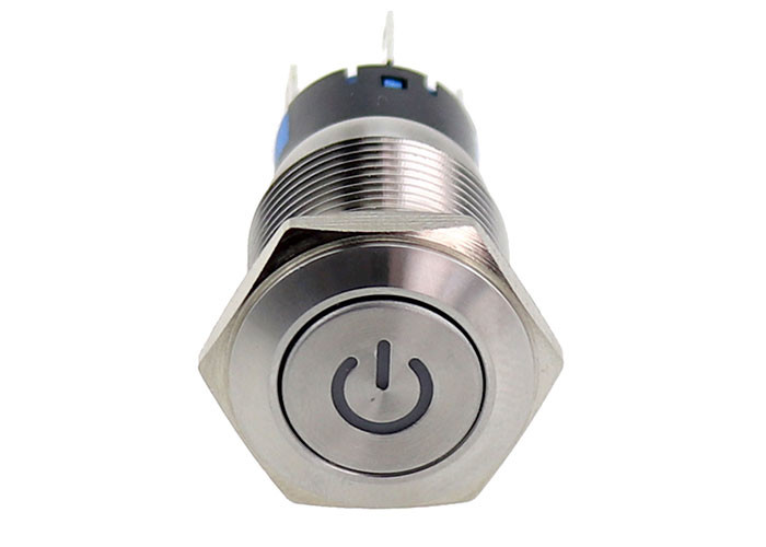 แผงยึด 16 มม. ต่อต้าน สวิตช์ปุ่มกดป่าเถื่อนสัญลักษณ์พลังงาน Led 12v 220v Latching Momentary รถ สวิตช์